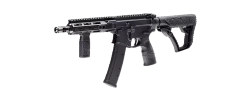 Le DD PCC (pistol caliber carbine) SBR ultra-compact est un fusil de type AR15 à canon court, portable et très maniable.