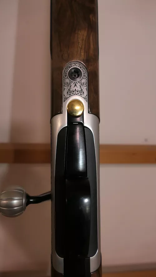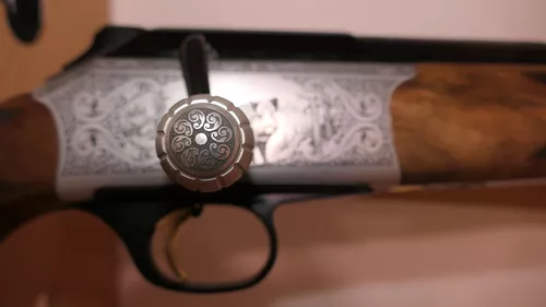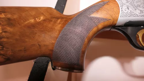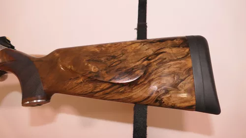 Crosse et devant en Noyer Luxe 4 Etoiles avec une finition poncée huiléeCalotte outils avec clé universelle posée à la poignéeNouvelles Grenadières rapid® avec embases montées sur la crosse.