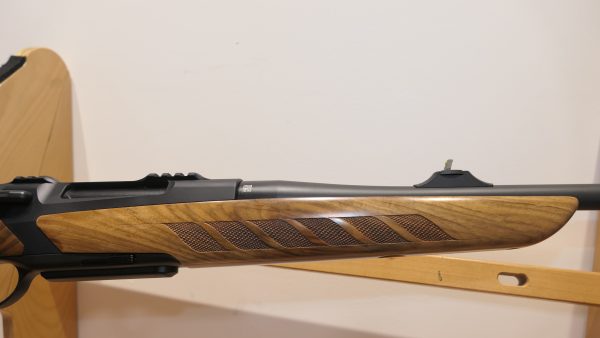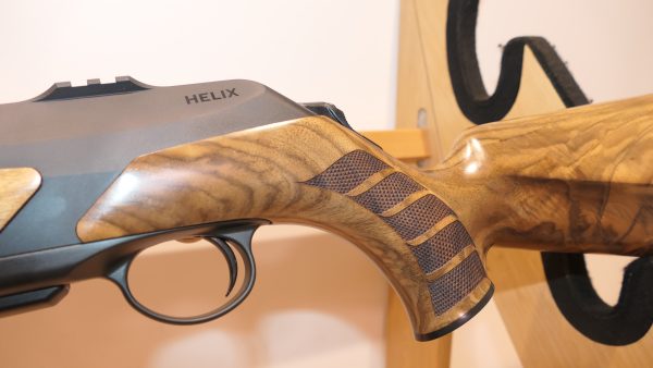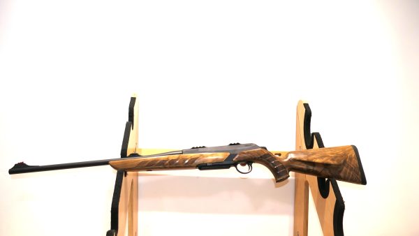 Merkel RX Helix Elegance  équipée d’un levier boule en bois. Cette carabine RX Helix se distingue par son réarmement linéaire ultra-rapide, avec une course de seulement 6,5 cm. Sa culasse est soigneusement confinée dans le boîtier, et elle est pourvue d’un armurier séparé. La détente offre une sensation douce, nette et précise. Son chargeur amovible tombant, d’une capacité de 3+1, est compatible avec tous les calibres. Le vérouillage rotatif à 6 tenons dans le canon assure une sécurité optimale. De plus, elle dispose d’un système de montage intégré. Cette arme peut être entièrement démontée en quelques secondes et sans outils, permettant ainsi, par exemple, l’interchangeabilité des calibres. Le bois de noyer grade 5 confère une touche d’élégance supplémentaire à cette carabine exceptionnelle.