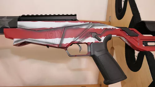 Carabine de tir de précision dotée d’un chassis en matière synthétique renforcée de fibres pour plus de rigiditéLa crosse est règlable en longueur avec appui-joue réglable en hauteur, elle comporte un rail Picatinny dans sa partie inférieure pour la fixation d’un monopod