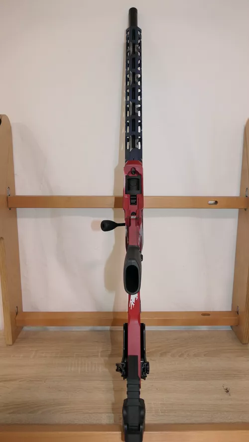 Le garde main est au standard Magpul M-LOKLe canon lourd est fileté au standard américain 1/2×28La culasse est dotée d’un levier surdimensionnéLe rail Picatinny pour le montage d’une lunette est penté à 30 MOA pour permettre le tir à longue distanceLe chargeur rotatif 10 coups est totalement intégré à la ligne de l’armeFournie avec 1 chargeur 10 coups et un cadenas de verrouillage