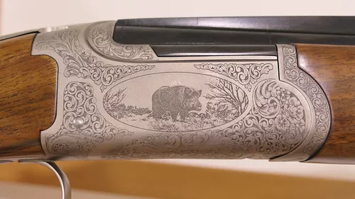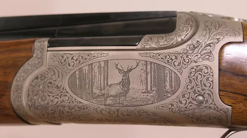 Gravure scène de chasse et traitement nickel chimique de couleur gris vieil argent