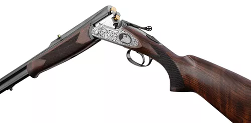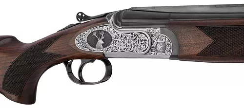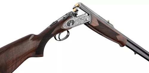 Type d’arme : Carabine Express superposéeSystème de bascule : Acier avec faux corps, gravure PrestigeÉjection des douilles : Éjecteurs automatiquesBois : Crosse et devant en noyer sélectionné, poncé huiléFinition : Gravures artisanales exclusivesPoids : Environ 3,4 kgUtilisation : Chasse au grand gibier en battue ou à l’approche