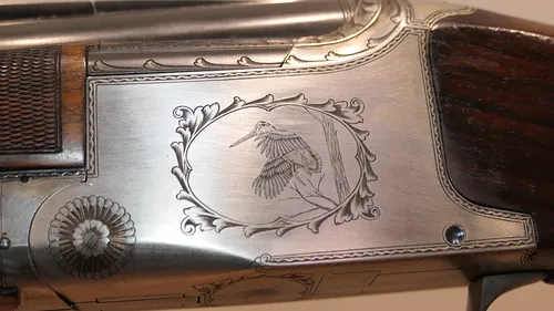 très jolie Browning B25 customisé avec un devant 3 pièces , gravure main , thème Bécasse, épagneul