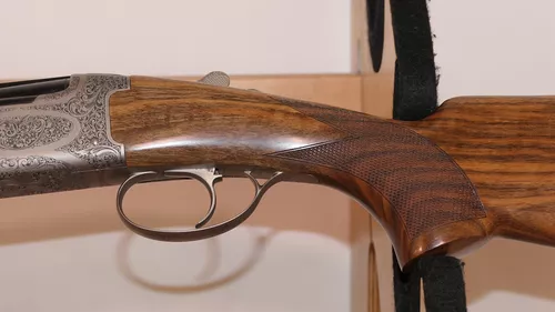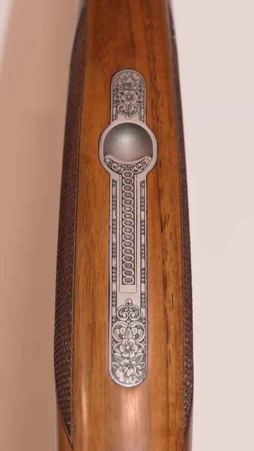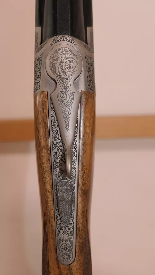 Le modèle C30 est à Extracteur et le modèle C35 à Éjecteur.Nouvelle forme arrondie pour la bascule des versions 700mm ou 660 mm.Nouvelle gravure ornementale en fine anglaise continue sur l’ensemble de la bascule et nouvelles scènes de chasse gravées sur les côtés et le dessous de la bascule.Crosse pistolet avec relime arrondie en Noyer 2 2toiles pour les modèles Extracteurs et 3 Étoiles pour les modèles Éjecteurs (crosse anglaise sur demande).Ponçage à l’huile et quadrille main. Batterie « Blitz » à double détente et pontet court.