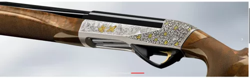 Véritable bijou signé Benelli, le Raffaello BE.S.T. Limited Edition en calibre 20 offre une excellence absolue en seulement 500 exemplaires disponibles. Ce bijou en série limitée est équipé de la technologie exclusive Benelli Advanced Impact, qui maximise les performances balistiques du canon et du choke, garantissant des performances extraordinaires. L’élément distinctif est la gravure, un authentique hommage à l’art de la chasse. Sur le côté droit de la carcasse, on trouve un setter courant vers une bécasse. Ce même setter, au coin de la gravure, est un spectateur silencieux de la scène. Le côté gauche propose la même composition figurative, mais cette fois la végétation, plus ouverte et linéaire, sert de toile de fond à un pointer, fier et tendu vers des cailles en fuite. Pour compléter la gravure, on trouve un ornement floral qui se développe autour de la carcasse, agrémenté de quelques feuilles dorées et d’un collier avec un tissage décoratif sur le thème de la Renaissance pour clore la composition. Ce fusil semi-automatique n’est pas seulement une arme distinctive, mais une autre icône représentative du style Benelli.