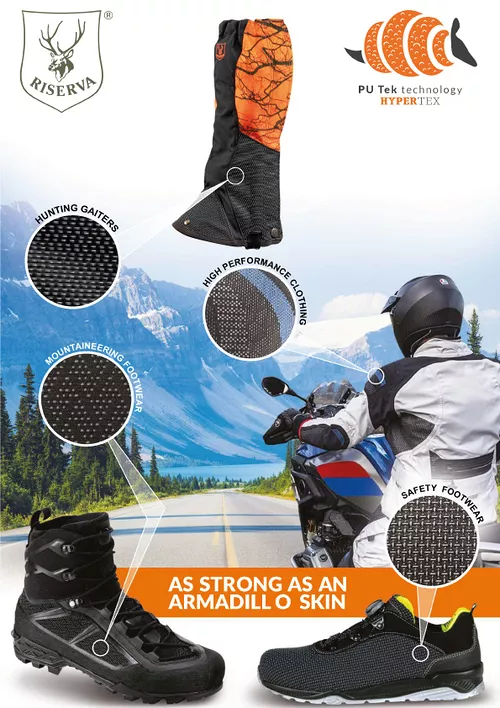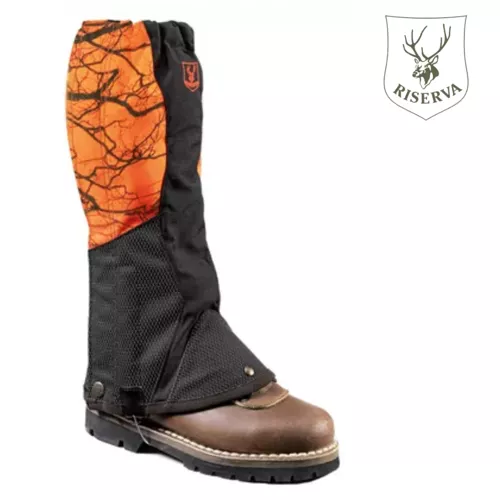Nouvelle guêtre ergonomique en nylon orange fluo avec effet des branches, renforcé avec Putek un matériau anti abrasif, ultra résistent et protecteur.