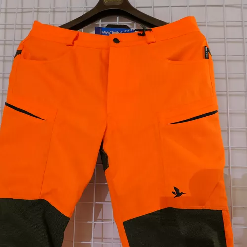 Comme la veste, le pantalon Kraft Hi-Vis Seelandest fait pour le chasseur qui a besoin d’un pantalonvraiment solide et résistantorange fluo.