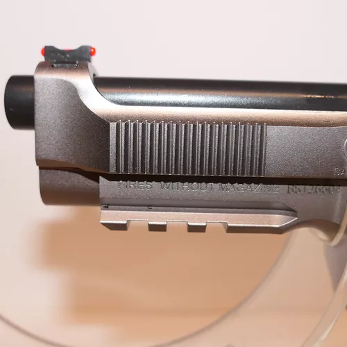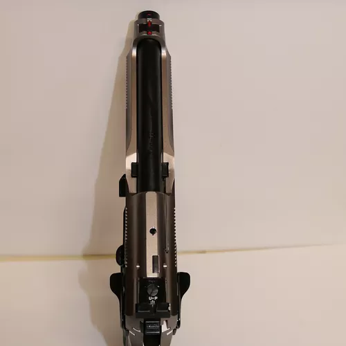 VITESSE 92X PERFORMANCE Le levier de démontage de type «Match» assure un point de référence précis pour la seconde main. Le pistolet est équipé d’un guidon à lame, interchangeable, avec fibre optique.Le 92X Performance possède un look bicolore séduisant et raffiné, obtenu avec une finition Nistan, permettant de traiter la surface de la carcasse.